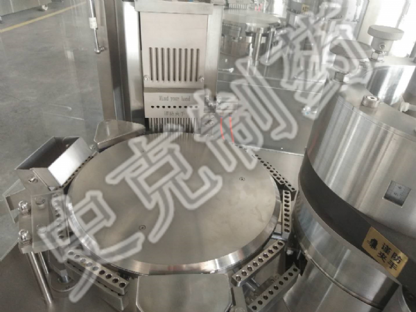 5、配備粉體物料充填機(jī)構(gòu),使粉體物料經(jīng)過膠囊填充料倉裝置連續(xù)均勻強(qiáng)制下料至膠囊填充區(qū);