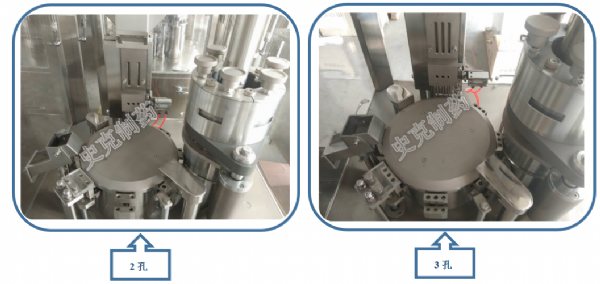5、配備粉體物料充填機(jī)構(gòu),使粉體物料經(jīng)過膠囊填充料倉裝置連續(xù)均勻強(qiáng)制下料至膠囊填充區(qū);